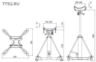 Стойка трансмиссионная гидравлическая 1т ATS-4045. Оснащена площадкой с множеством регулировок. Регулируемые цепи и скобы позволяют использовать стойку для снятия и установки большинства трансмиссий, коробок передач, дифференциалов и прочего. Широкая база и поворотные колеса диаметром 90 мм обеспечивают высокую устойчивость конструкции. Гидравлическая система оснащена предохранительным клапаном, защищающим от перегрузки. Высокопрочная усиленная конструкция.